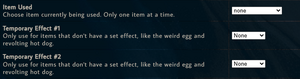 You will only need to use Temporary Effect #1 and Temporary Effect #2 when using items that don't have a set effect, such as the Revolting Hot Dog or Canned Tuna. In those cases, you will manually set the stat bonus by choosing +1 (Stat) or -1 (Stat) in the drop-down. For example, if you're receiving a +2 Daring after using the Canned Tuna, you will select "+1 Daring" in Temporary Effect #1 and "+1 Daring" in Temporary Effect #2.